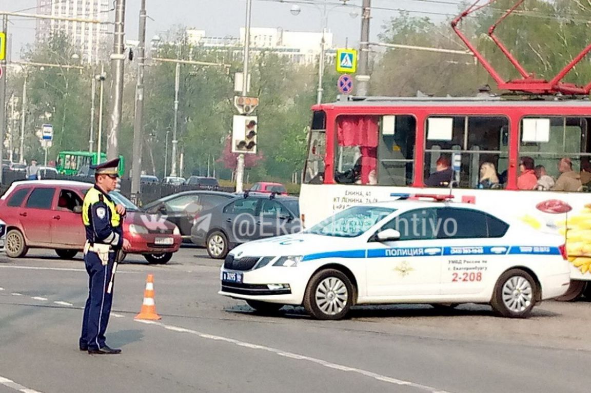 В Екатеринбурге утром 15 мая закрыли проезд по проспекту Ленина. На его пересечении с улицей Московской дежурит экипаж ДПС, который разворачивает автомобилистов.