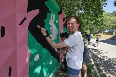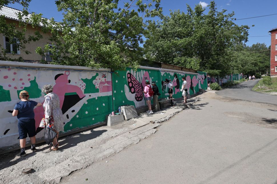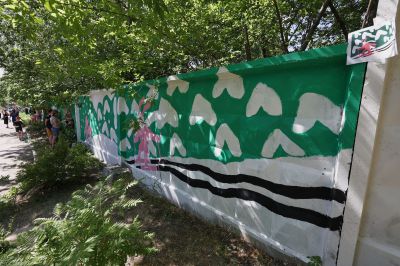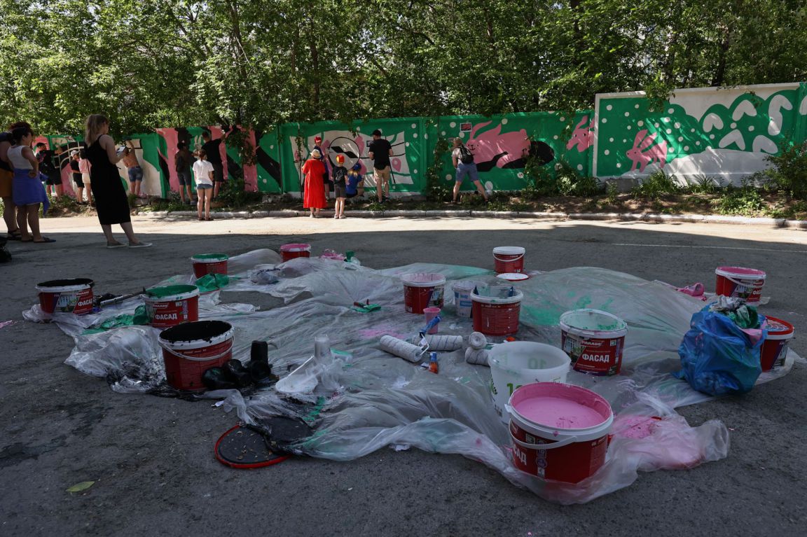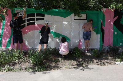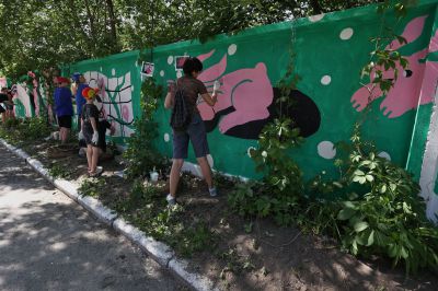 В мае участниками районной школы паблик-арта от фестиваля «ЧО» стали ученики школы-интерната №11 Екатеринбурга. Больше месяца под руководством художницы Наташи Пастуховой они изучали уличное искусство, пробовали себя в граффити и собирали истории о месте, где они живут и учатся. Результатом мастерской стал мурал длиной 128 метров, расположенный на Эльмаше недалеко от школы.