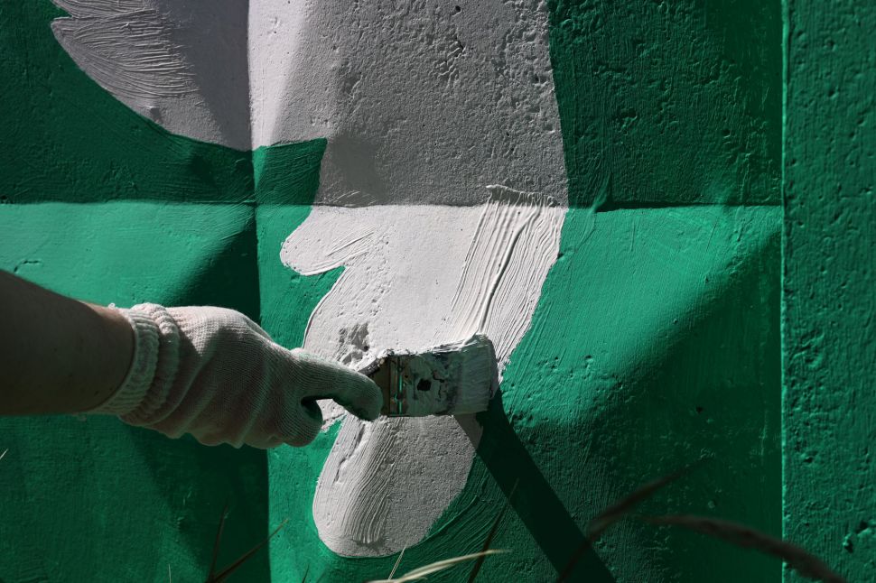 Эскиз для арт-объекта подготовила Наташа Пастухова по собранным ребятами историям о школе, о жизни на Эльмаше, «Калининце», лесопарке, впечатлениях и воспоминаниях по пути в школу и домой. Мурал создавали по принципу «картины по номерам»: каждому участнику выделили цвет и стенку.