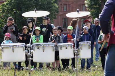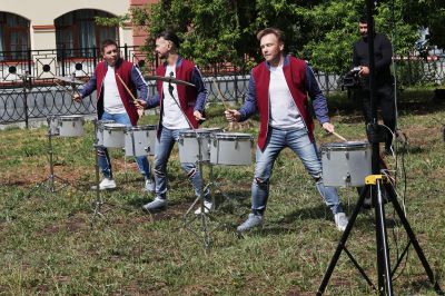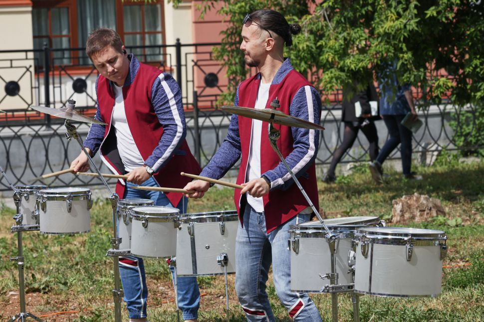 Свердловская филармония организовала в саду Вайнера музыкальную зарядку. Ритм задавали участники шоу барабанов «Чувство ритма», которые в конце июня станут участниками фестиваля «Безумные дни». Поскольку билетов на фестивальное выступление барабанщиков уже нет, организаторы фестиваля предоставили екатеринбуржцам возможность увидеть уникальное шоу.