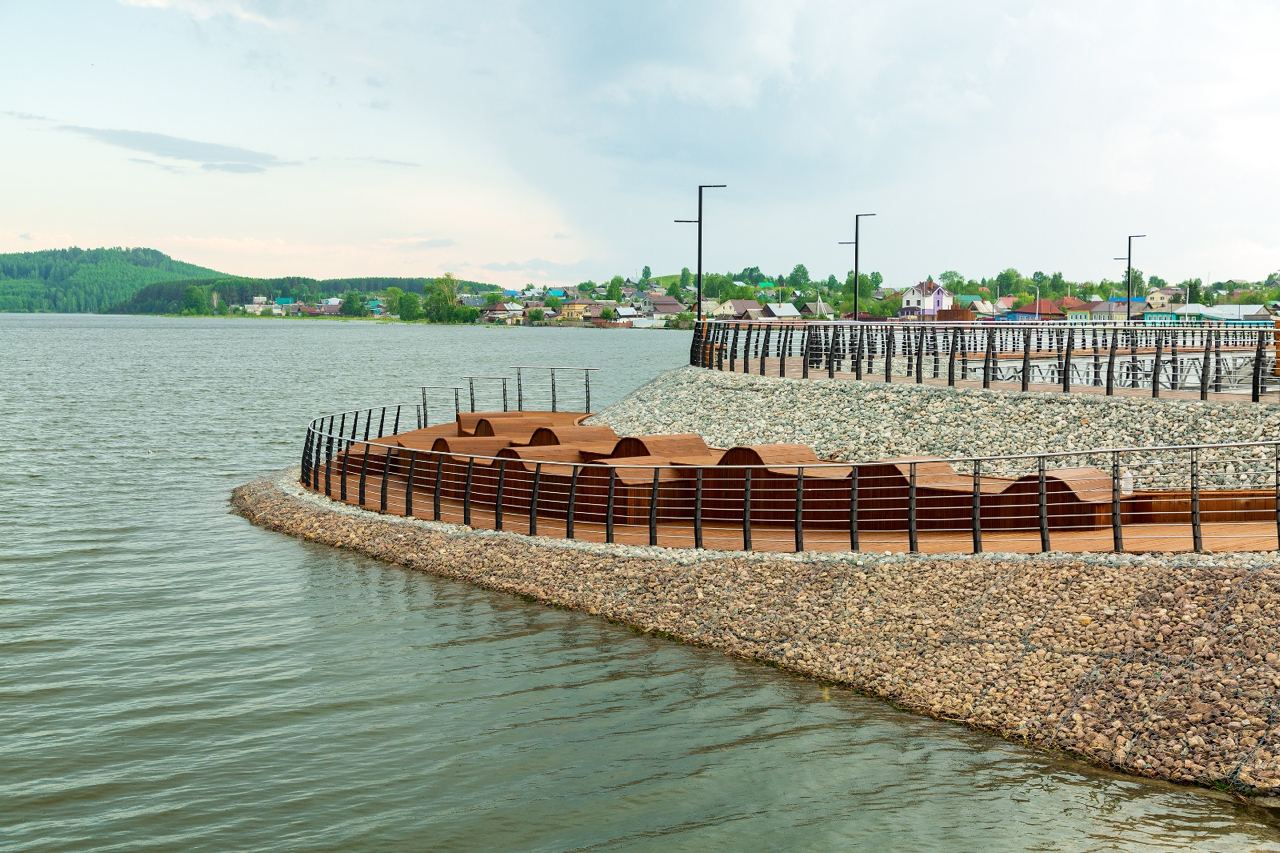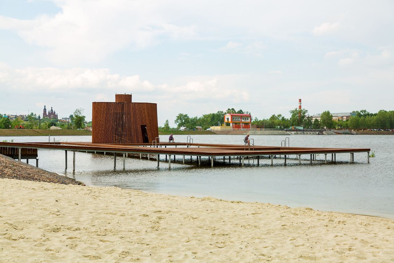 Для рыбаков и отдыхающих установили плавучие беседки и пирсы для рыбаков. Украшением набережной стали композиции из металлических пластин, ассоциирующиеся с цехами машиностроительного завода.