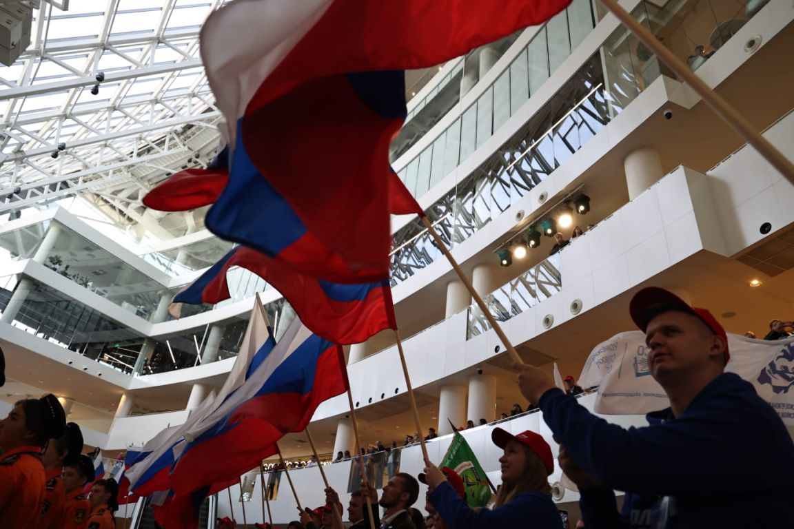 Государственные флаги России были торжественно переданы представителям патриотических, ветеранских, добровольческих организаций, национально-культурных автономий, казачьих обществ.