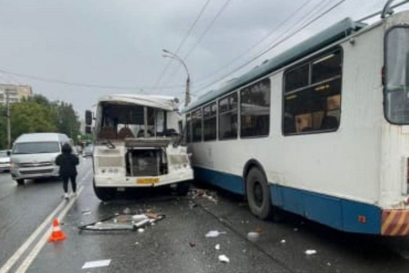 В Екатеринбурге ПАЗ выехал на встречку и врезался в троллейбус