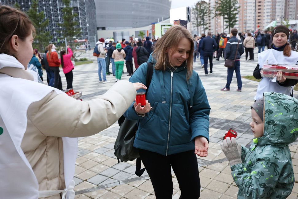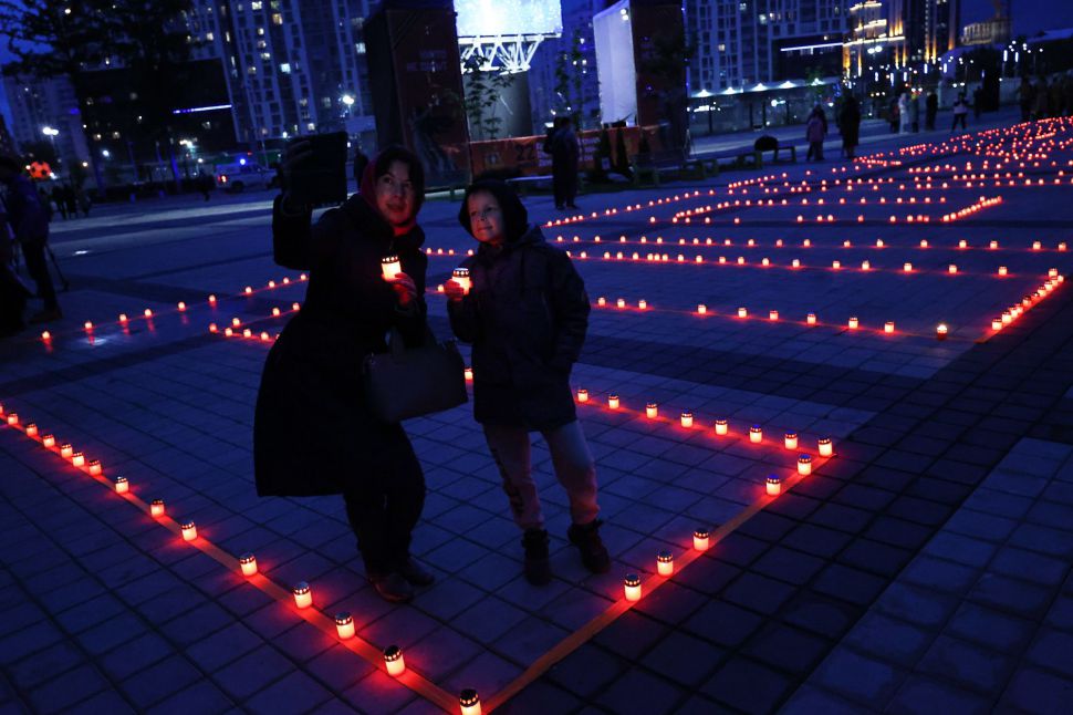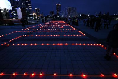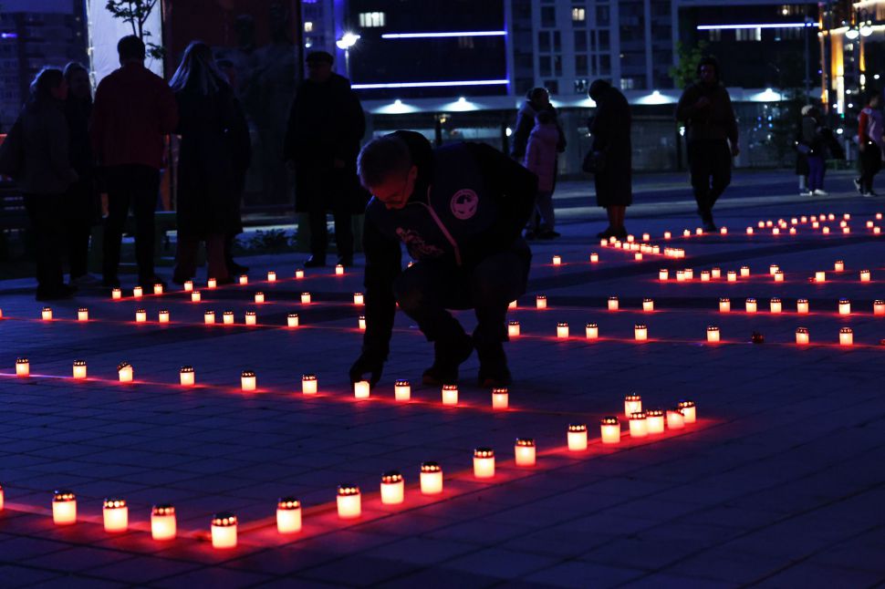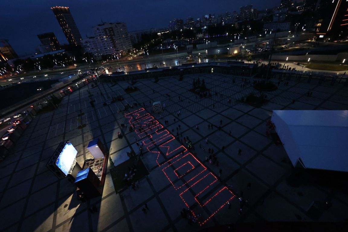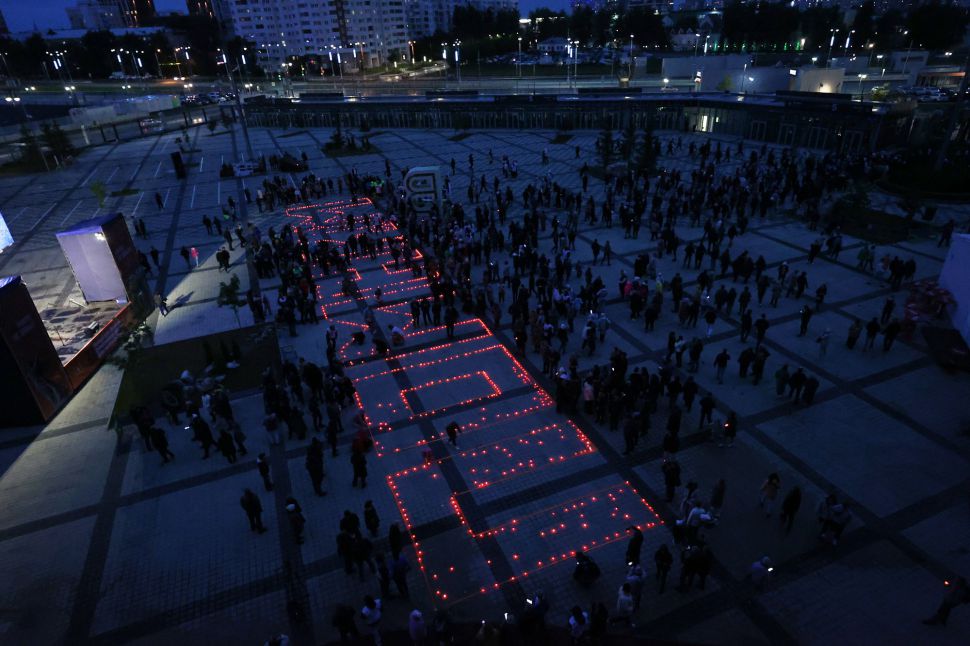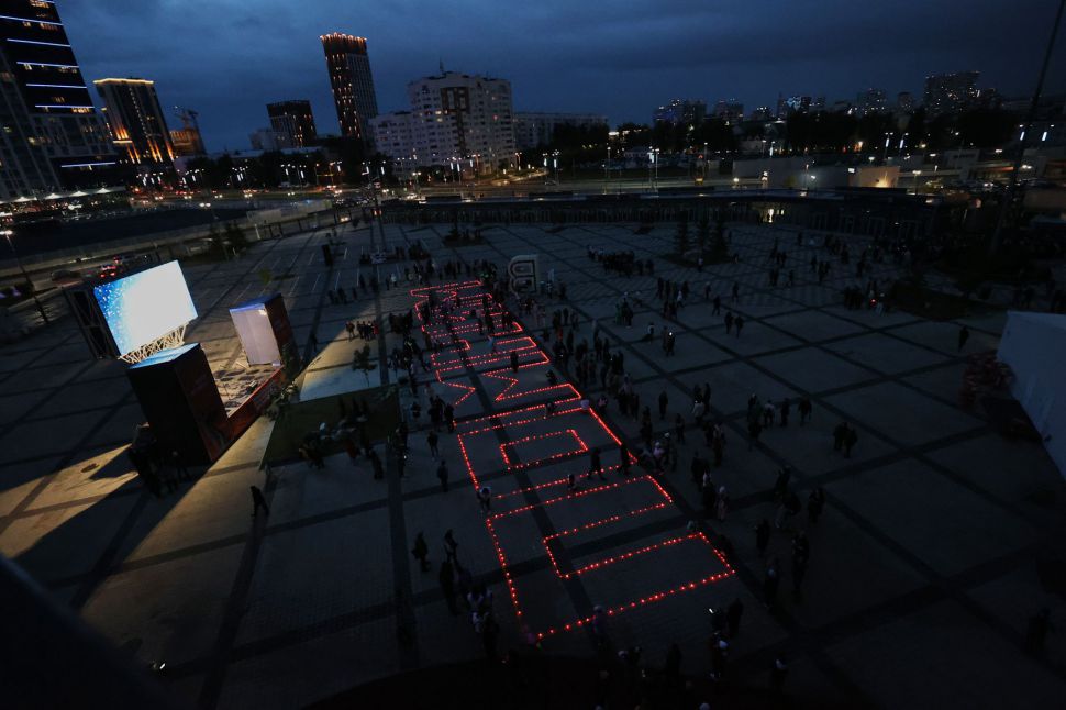 Мероприятие прошло на стадионе «Екатеринбург Арена» вечером 21 июня — в преддверии Дня памяти и скорби. Уральцы выстроились в слово «Помним» с зажженными свечами в руках.