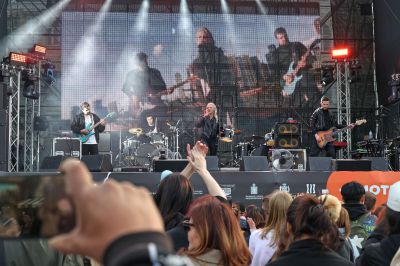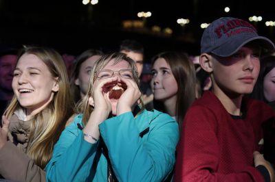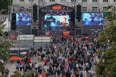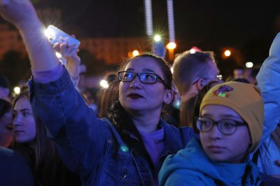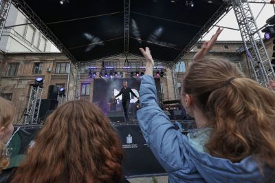 Главная сцена Ural Music Night в этом году располагалась на площади Кирова. Именно на этой площадке тысячи зрителей встретили рассвет под песню «Луч солнца золотого» из мультфильма «Бременские музыканты». Ее исполнил Валерий Сюткин в сопровождении Камерного оркестра B-A-C-H.