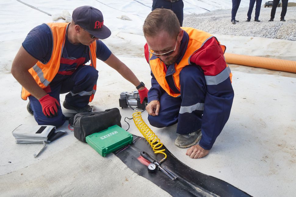В состав МСК включен комплекс компостирования для переработки органической части отходов в техногрунт. Для исключения попадания фильтрата в грунтовые воды в основание полигона уложили герметичный противофильтрационный экран.