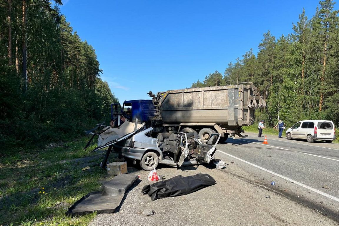 На Екатеринбургской кольцевой автомобильной дороге утром 24 июля произошло смертельное ДТП. Столкнулись КамАЗ и ВАЗ-2114.