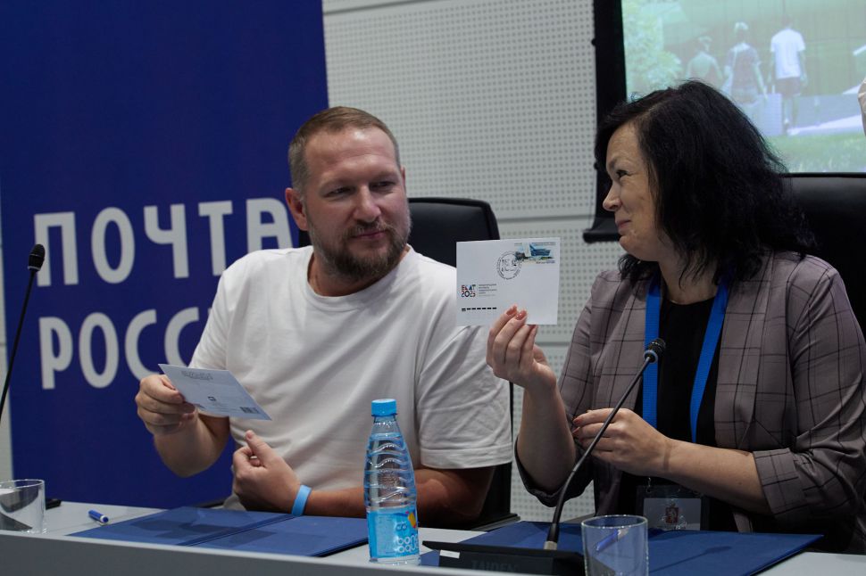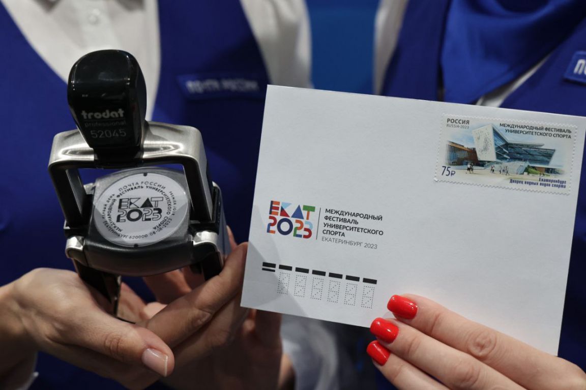 Дирекция международного фестиваля университетского спорта и «Почта России» торжественно ввели в почтовое обращение марку, посвященную приближающимся соревнованиям. Церемония гашения прошла во Дворце водных видов спорта в Екатеринбурге. Именно этот объект, построенный специально к проведению фестиваля, изображен на марке.