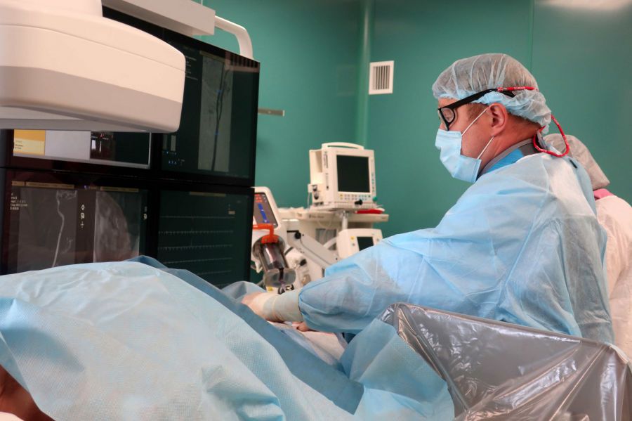 Врач отделения рентгенохирургических методов диагностики и лечения Вадим Бебнев одномоментно выполнил тромбэкстракцию и имплантацию специального устройства для улавливания тромбов в нижнюю полую вену, чтобы предотвратить повтор сосудистой катастрофы. Как выяснилось позже, у молодой женщины имеется генетически обусловленная склонность к образованию тромбов.