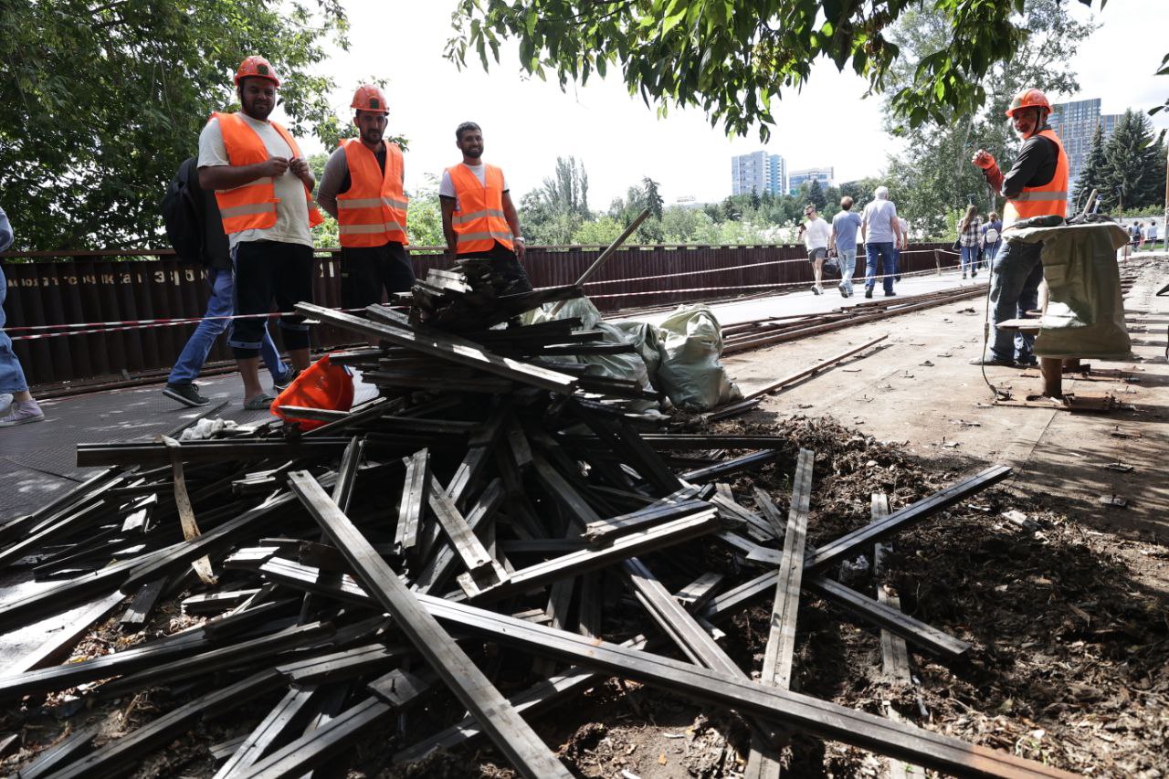 Рабочие полностью сняли деревянное покрытие — его заменят на новое. Также в порядок приведут и другие элементы моста.