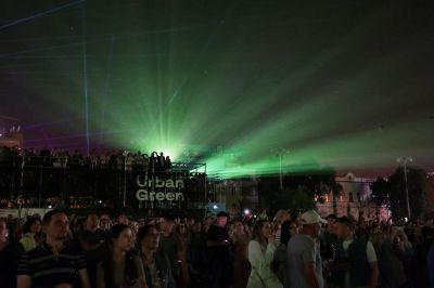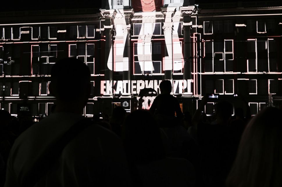 В Екатеринбурге в четверг, 17 августа, состоялось первое мультимедийное представление «E-World», посвященное трехсотлетию уральской столицы, состоялось в четверг. Шоу транслировалось на фасаде здания администрации города.