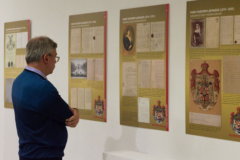 «В выставочном проекте представлены архивные документы о деятельности наследников одного богатейших представителей рода — Николая Никитича Демидова и его сыновей Павла и Анатолия. Освещается их жизнь как представителей высшего российского дворянства, преобразование их деятельности на благо Отечества от производства военной продукции к расширению сферы благотворительности и меценатства, а также к включению в круг их интересов европейских дел. Представленные документы позволят оценить масштаб их начинаний в контексте российского и европейского исторических процессов», — рассказал начальник управления архивами Свердловской области Роман Тараборин.
