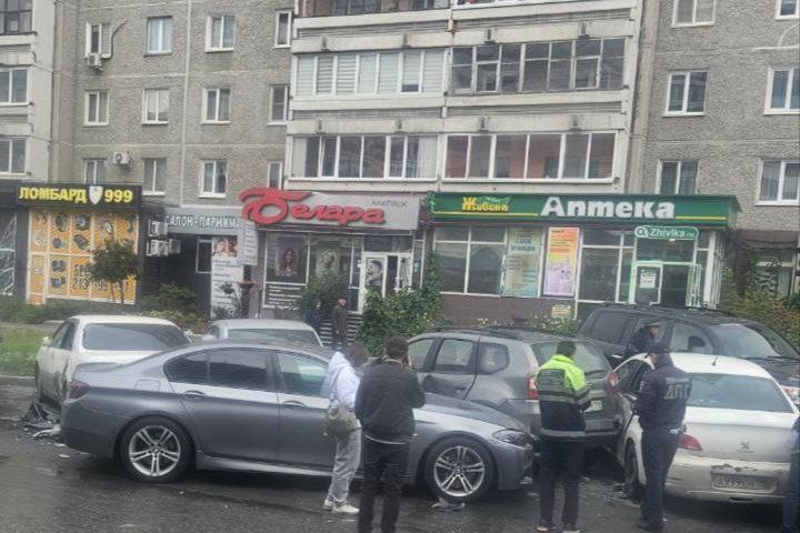 В Екатеринбурге водитель BMW врезался в пять припаркованных автомобилей на улице Родонитовой. ДТП произошло ранним утром 11 сентября.
