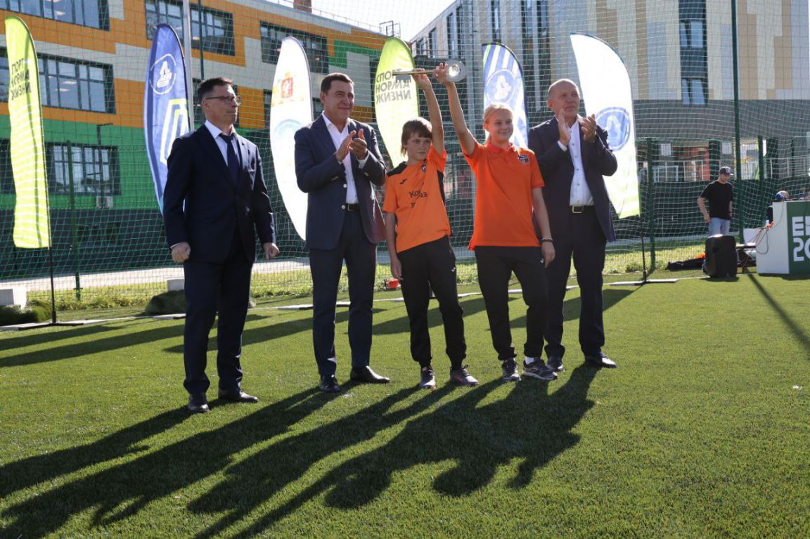 Губернатор Свердловской области Евгений Куйвашев и президент футбольного клуба «Урал» Григорий Иванов открыли спортивный центр для академии футбольного клуба «Урал». Воспитанникам академии – Артему Кудрявцеву и Еве Ивановой – глава региона передал символический ключ.