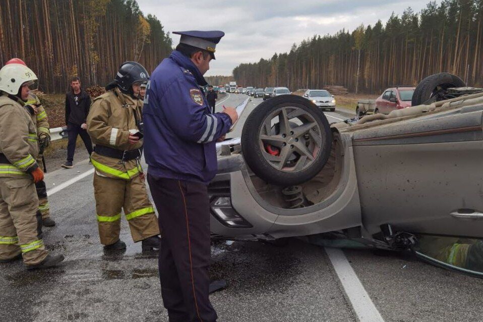 В Свердловской области на 13 километре автодороги Екатеринбург - Тюмень произошло столкновение автопогрузчика и легковушки. Последняя от удара опрокинулась на крышу. Автоинспекторы разбираются в причинах ДТП.