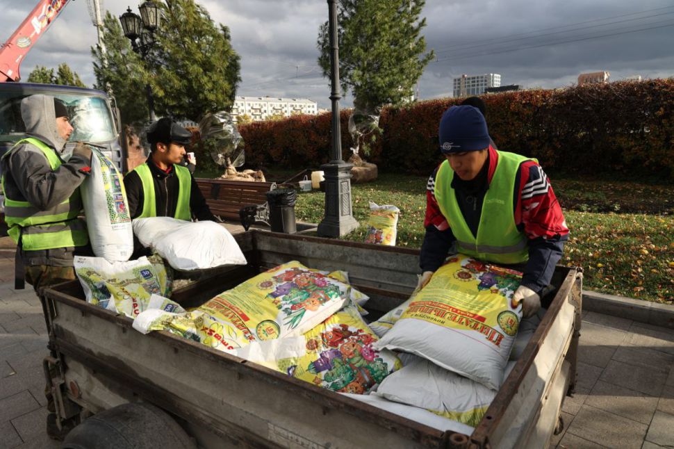 Десять саженцев кедров сегодня высадили в грунт в самом центре города.