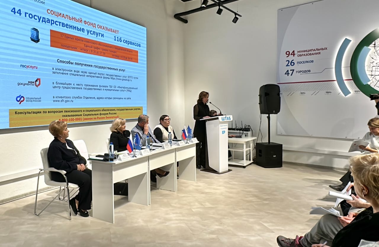 Управляющий ОСФР по Свердловской области Елена Альшиц совместно с председателем общественного совета партпроекта «Старшее поколение» Еленой Шириной и первым заместителем министра социальной политики Свердловской области Евгением Шаповаловым приняла участие в заседании круглого стола по вопросам пенсионного и социального обеспечения.