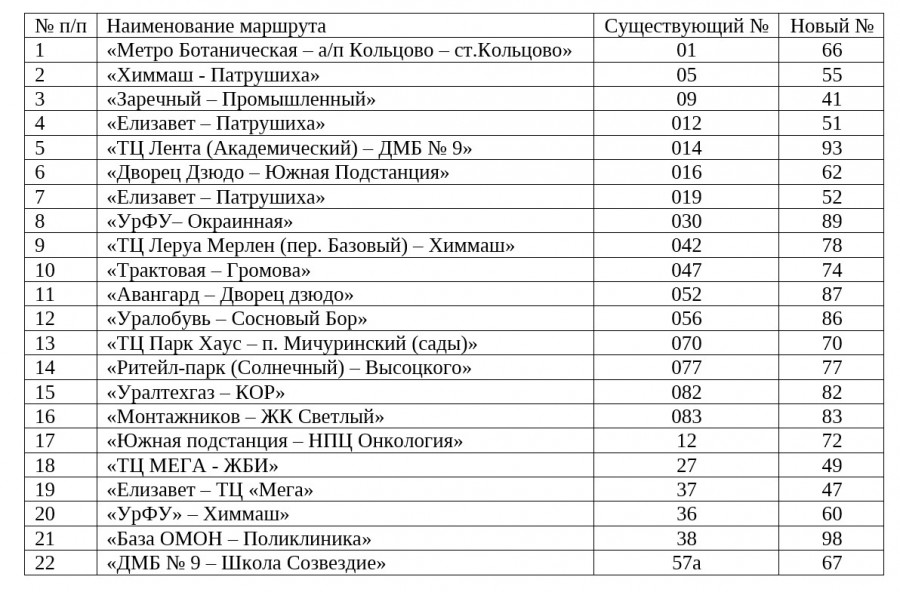 Кроме того, 22 из 69 существующих автобусных маршрутов в уральской столице изменят номера, а у семи действующих маршрутов изменится схема движения.