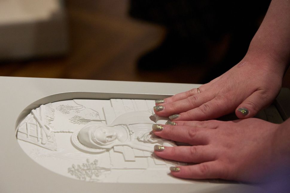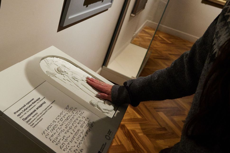 Тактильные копии были созданы для произведений постоянной экспозиции «Западноевропейское искусство XV – начала XX века». Незрячие посетители могут познакомиться с такими экспонатами, как «Поклонение младенцу» итальянского художника круга Себастьяно Майнарди, «Женский портрет» Хендрика Корнелиса ван дер Влита, «Голова старухи» Бальтазара Деннера, «Прачка» Паскуале Челомми и «Лунная ночь на море» Франсуа Антуана Леона Флери.