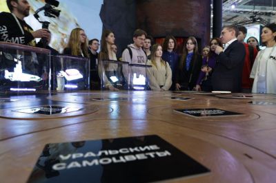 Во время проходящего на ВДНХ Дня Свердловской области Евгений Куйвашев показал гостям уникальный интерактивный стенд региона. Экспозиция рассказывает жителям России помогает о прошлом, настоящем и будущем Среднего Урала. Рассказывая о кампусе мирового уровня УрФУ губернатор пригласил юных гостей выставки поступать в свердловские вузы.