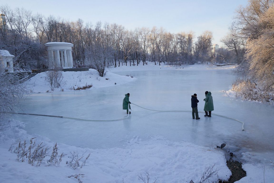 В Харитоновском парке в Екатеринбурге заливают каток на пруду