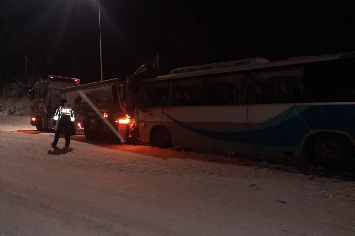 Как рассказали в областной ГИБДД, автобус следовал из Тюмени в Краснотурьинск. В салоне находились 18 пассажиров. В какой-то момент водитель автобуса врезался в большегруз, который ехал перед ним в том же направлении.