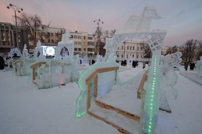 Ледовый городок будет работать до 14 января. В нем будет работать новогодняя ярмарка. Также здесь пройдет XXII Международный конкурс ледовой скульптуры «Европа – Азия». Снос городка пройдет в период с 15 по 21 января.