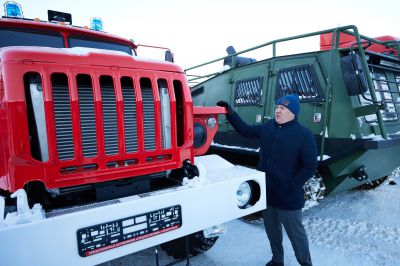 Ключи от новых пожарных автомобилей «Урал», снегоболотоходов и другой спецтехники для Уральской авиабазы 24 января вручил первый заместитель губернатора Свердловской области Алексей Шмыков.