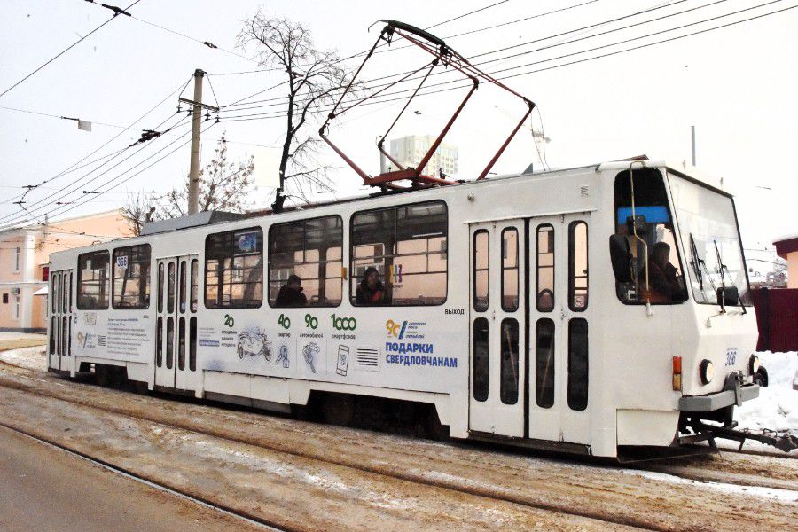 По Екатеринбургу начал курсировать брендированный трамвай, посвященный 90-летию основания Свердловской области. Об этом сообщает пресс-служба городской администрации.