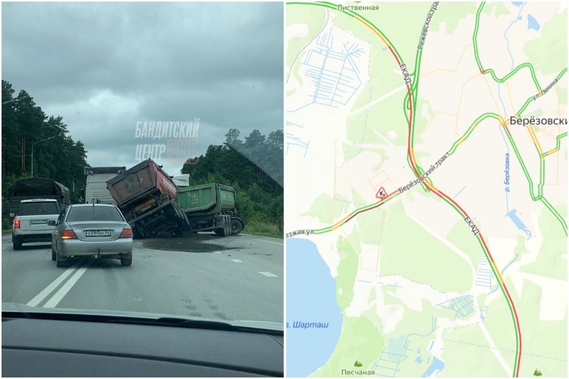 На ЕКАД образовалась огромная пробка из-за столкновения грузовиков