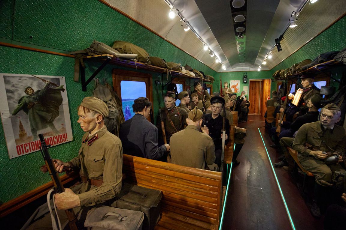 Музей уже принял первых посетителей. Каждый вагон поезда посвящен определенному периоду военного времени.