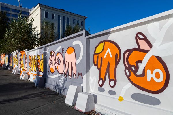 Екатеринбуржцы с особенностями слуха расписали бетонный забор на Карла Либкнехта, 38А, где находится Свердловская филармония. Граффити создали в рамках проекта «Люди рисуют». Как сообщили в пресс-службе «Стенограффии», в создании арт-объекта приняли участие 30 человек, в том числе представители центра психолого-медико-социального сопровождения «Эхо».