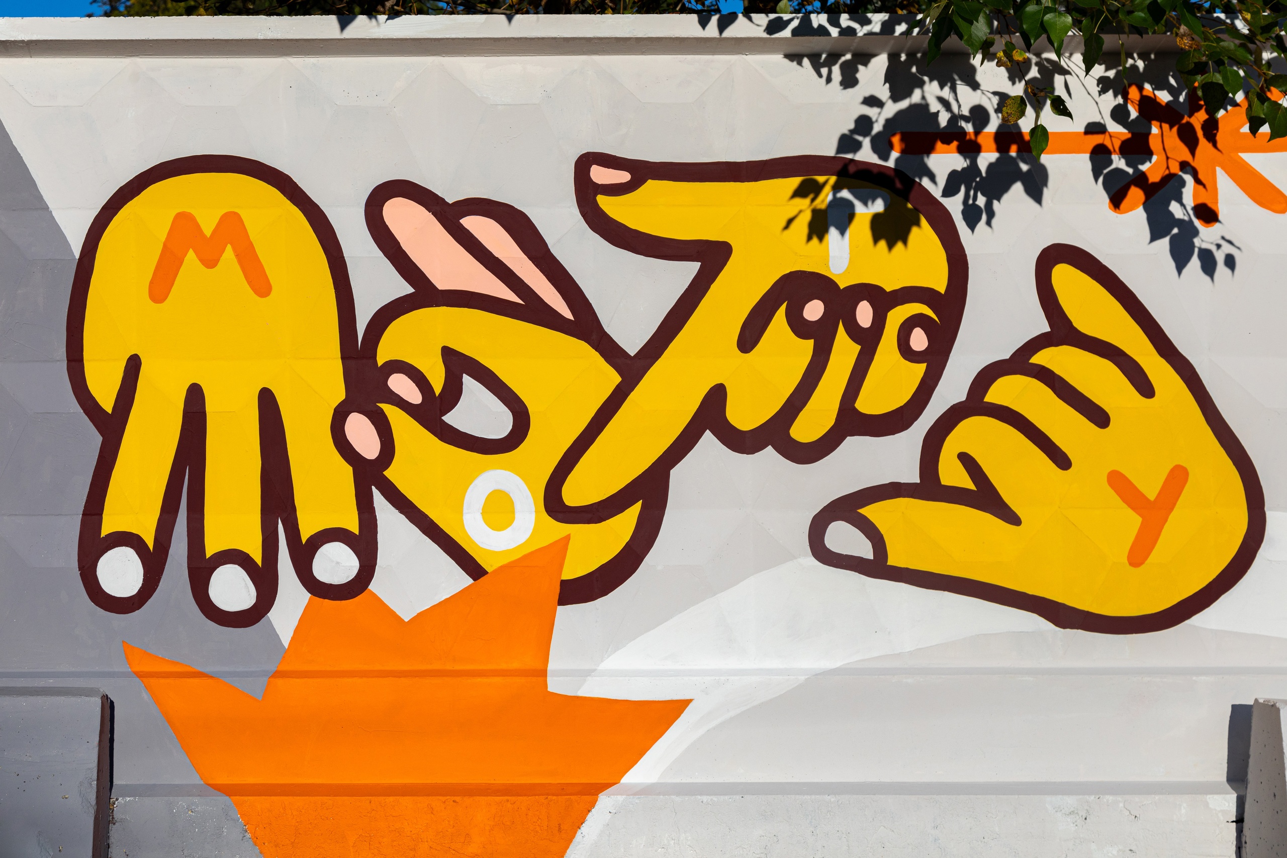 Эскиз проекта разработала команда «Крепкий палец» из Омска. Также над проектом помогали работать художники «Стенограффии» и команда MES CREW. На заборе дактильной азбукой написали фразу русского композитора Игоря Стравинского: «Нет на свете силы более могущественной, чем любовь». Работу оформили в теплых оранжевых тонах, что идеально вписало ее в осенний Екатеринбург.