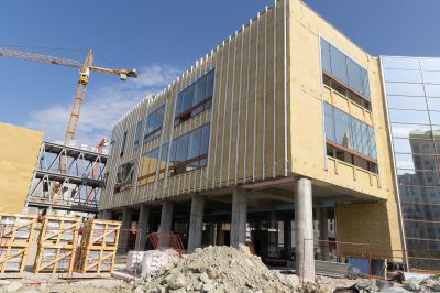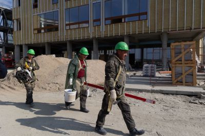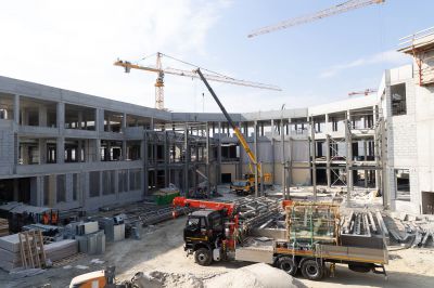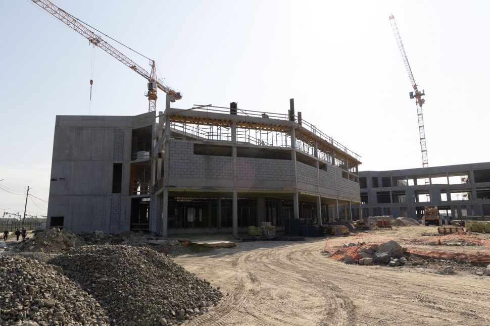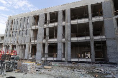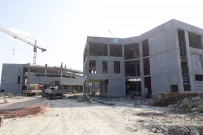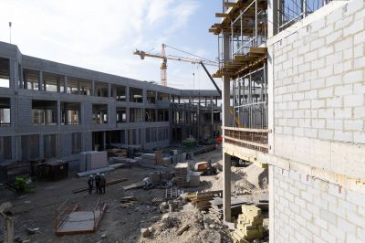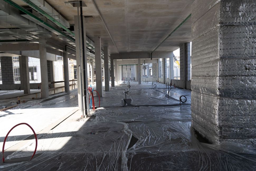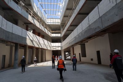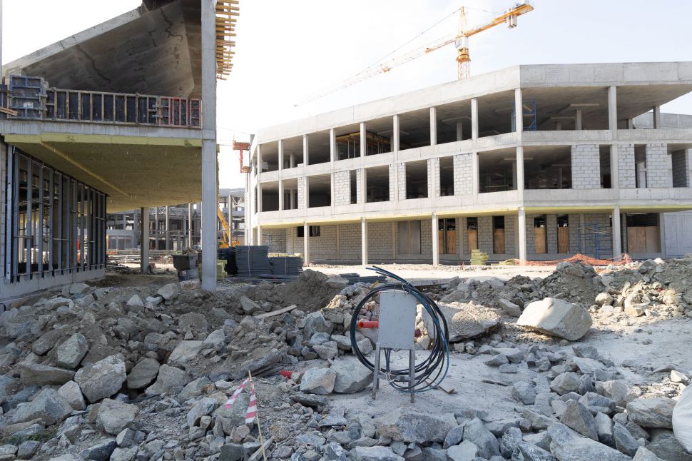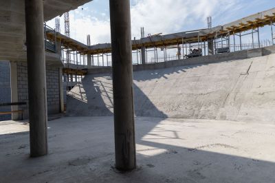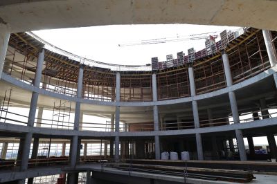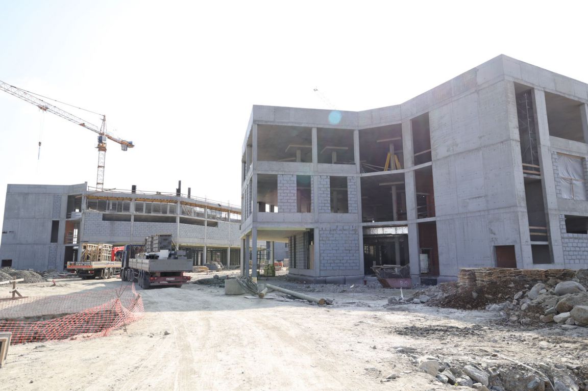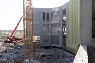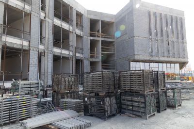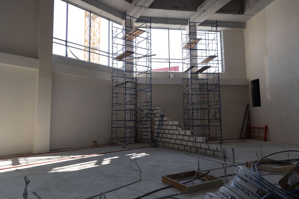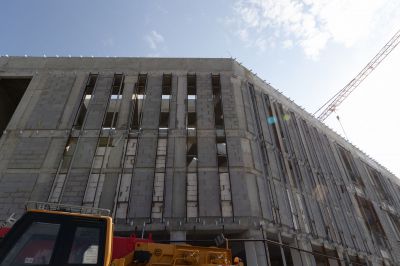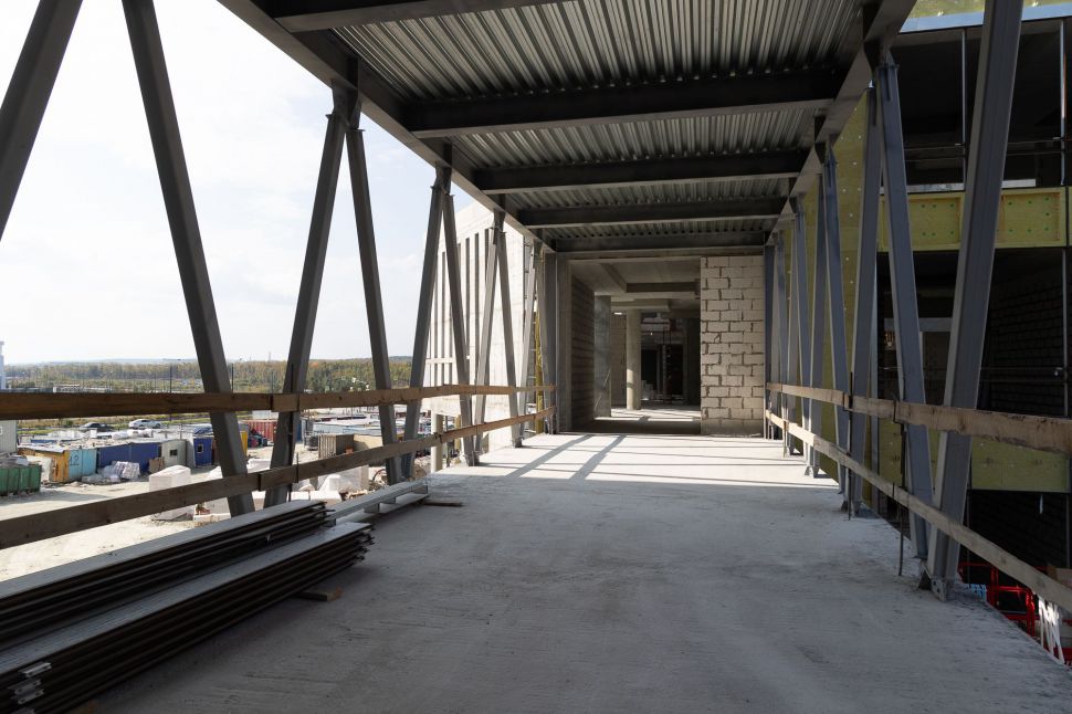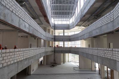 Сейчас на строительной площадке задействованы более тысячи специалистов. В зданиях выполняется отделка помещений, ведутся кровельные работы, устройство фасадов. Тепловой контур всех трех построек будет закрыт этой осенью, после чего начнется активная фаза монтажа внутренних инженерных систем.