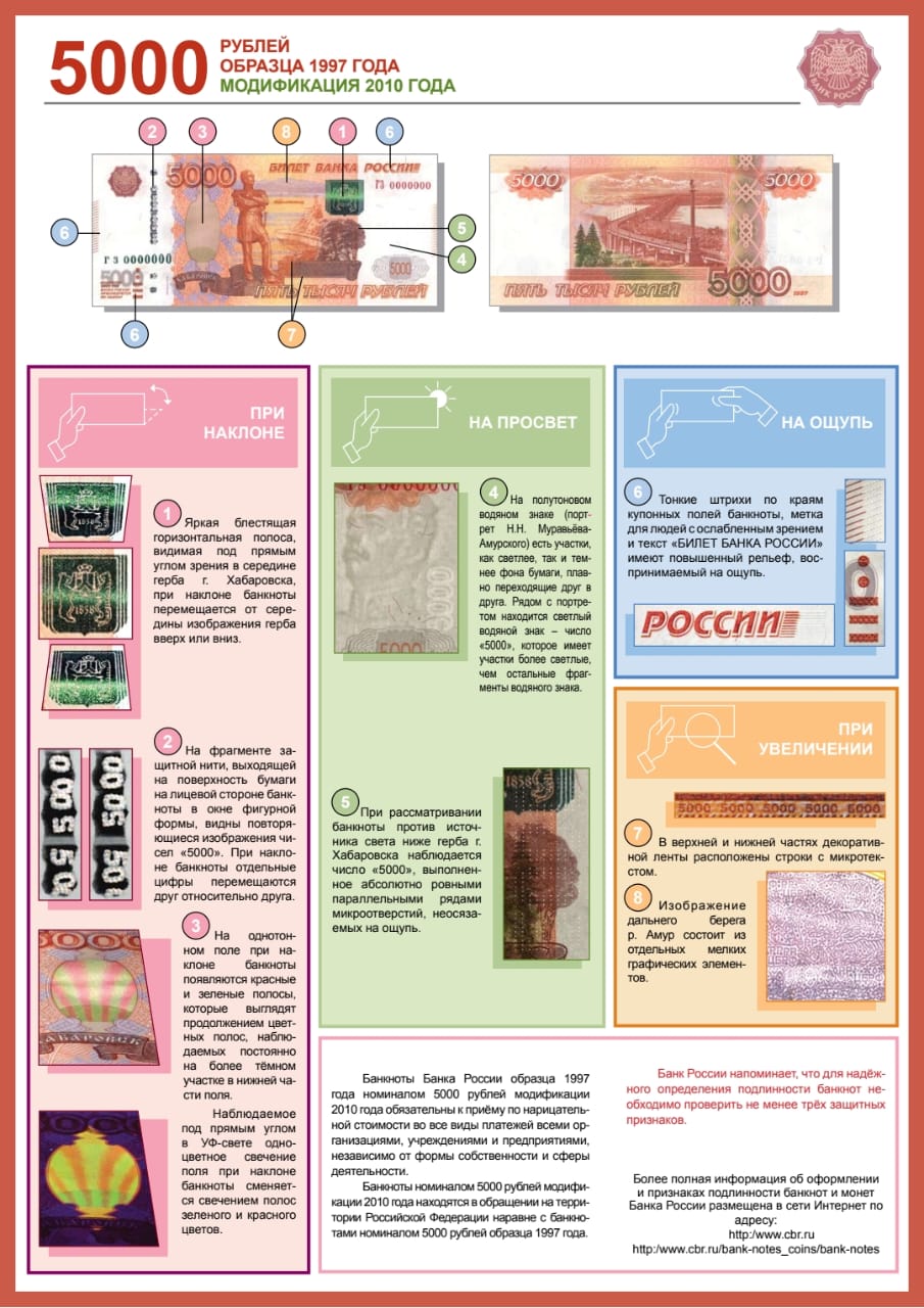 Основные отличительные признаки поддельной денежной купюры от подлинной: