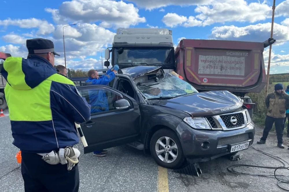 Массовая авария произошла на 169 километре трассы Екатеринбург – Нижний Тагил – Серов днем 25 сентября. По предварительной информации, водитель Nissan Pathfinder выезжал с территории придорожного кафе и поспешил, не уступив дорогу грузовику DAF.