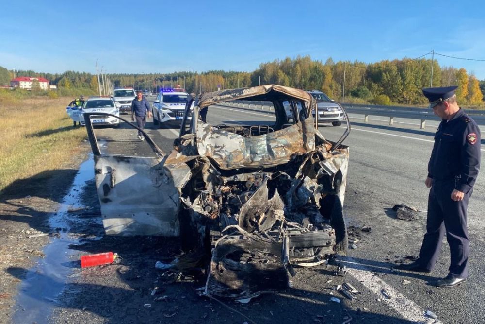 На место аварии прибыли сотрудники МЧС, чтобы потушить микроавтобус. Также туда направился заместитель главного госавтоинспектора региона и руководители отделов. Они выяснят подробности автокатастрофы и помогут установить причины произошедшего. Движение машин в сторону Челябинска осуществляется по одной полосе. Полиция проводит проверку.