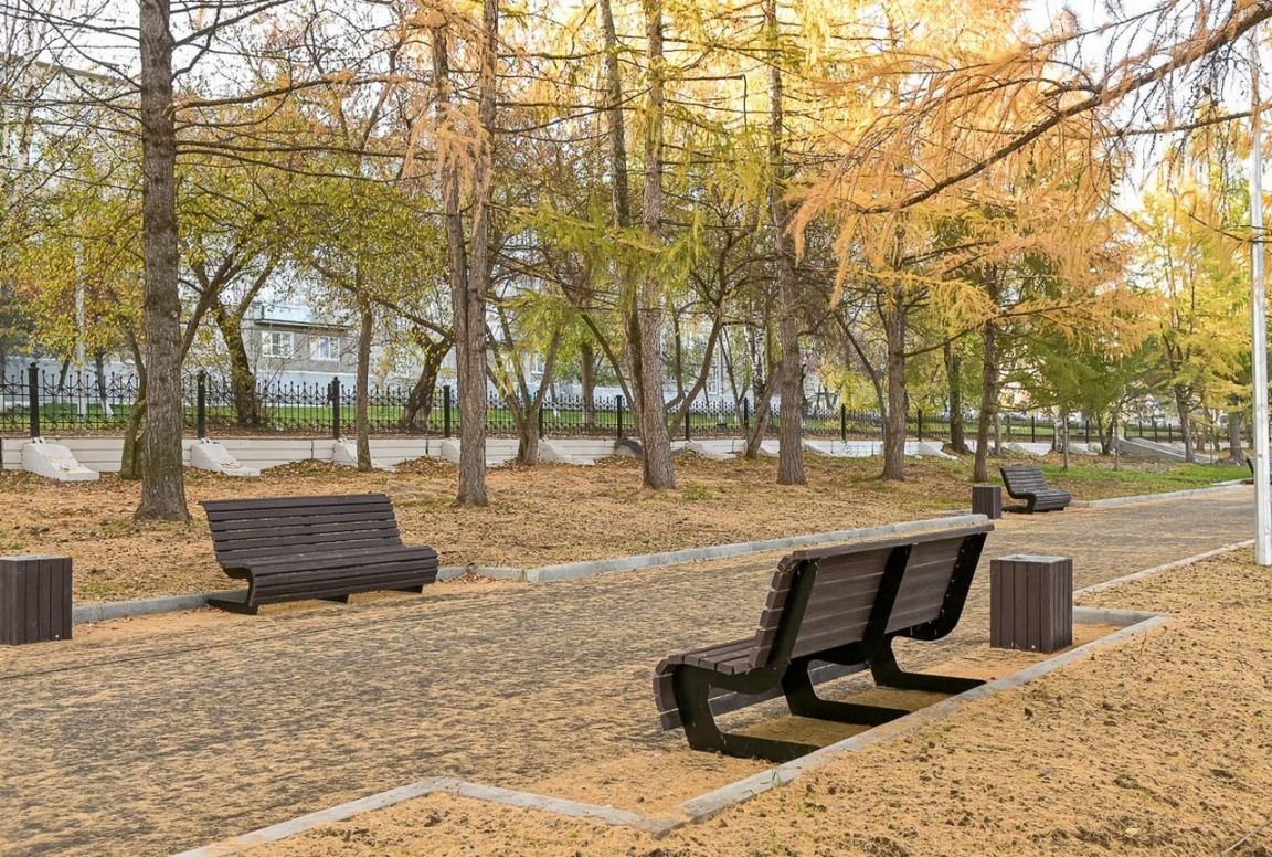 Здесь появятся две новые игровые площадки с безопасным покрытием для малышей и школьников, зона активного отдыха с тренажерами, велодорожкой и велопарковкой, будут высажены новые деревья и кустарники. Площадь сквера составит 11 тысяч кв.м.