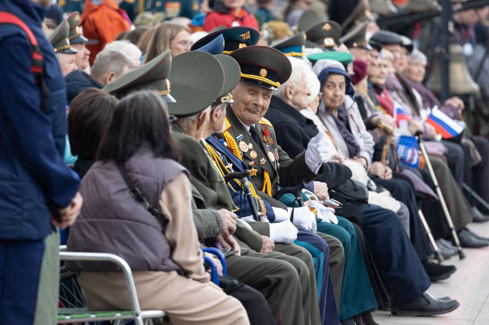 Шествие предварила торжественная церемония прибытия ветеранов Великой Отечественной войны. Около 40 героев приехали к трибунам перед монументом Ленину. Собравшиеся почтили память миллионов граждан Советского Союза, чьи жизни унесла война, минутой молчания.