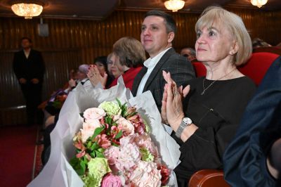 Музыкальный подарок героям торжества приготовили артисты театра музкомедии, показавшие гостям спектакль «Полет» о легендарной уральской гимнастке Лилии Назмутдиновой.