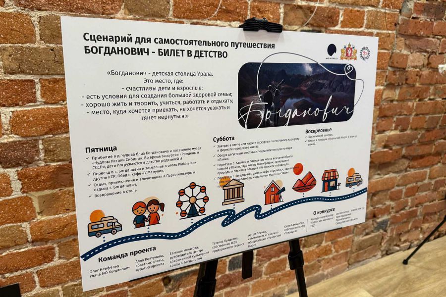 Первое место в номинации для самостоятельных путешествий занял маршрут «Билет в детство» из Богдановича, где  реализуется концепция города для детства, а также инвестиционный проект «Уральский Марс».