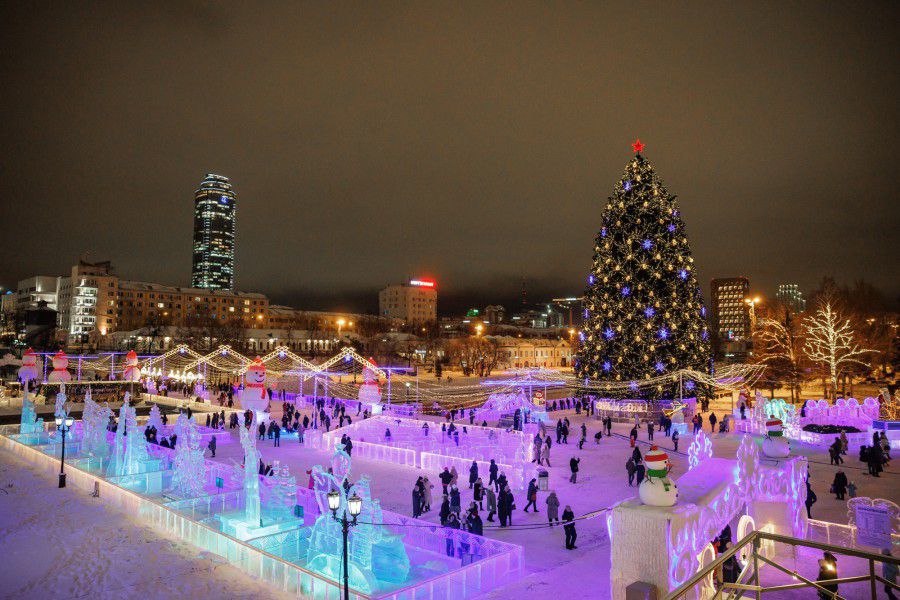 Как и в прошлом году, ледовый городок расположится в Историческом сквере уральской столицы. Рабочие уже установили здесь забор и технические помещения, провели электричество.
