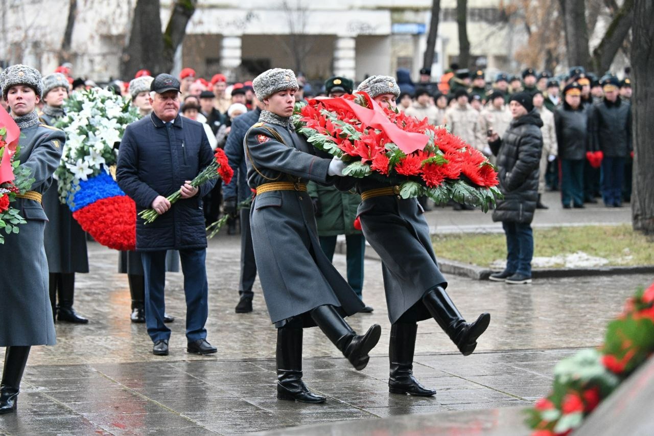 Празднование 15-летия со дня образования Центрального военного округа началось с церемонии возложения цветов к памятнику маршалу Георгию Жукову на проспекте Ленина.