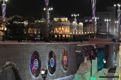 С наступающими праздниками гостей поздравили Дед Мороз и Снегурочка, роль которой исполнила «Мисс Екатеринбург» Зоя Белоногова.  Зрители полюбовались творениями, созданными участниками XXIV фестиваля ледовой скульптуры «Европа-Азия», также посвященными Свердловскому рок-клубу.