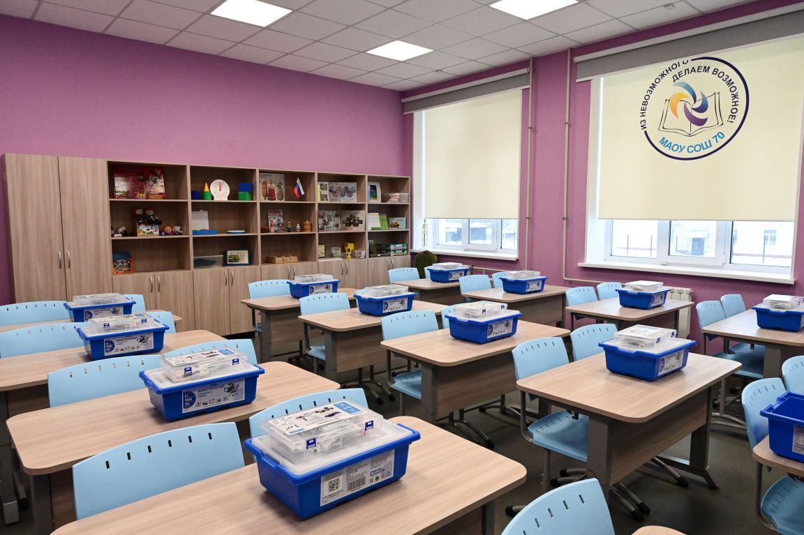 Школу оснастили современным оборудованием, закупили новую мебель, рельсовые системы с меловой, маркерной и интерактивными досками в кабинетах, а также автоматизировали рабочие места для педагогов. Оборудованы кабинеты естественно-научного цикла, цифровые лаборатории по физике, химии и биологии.