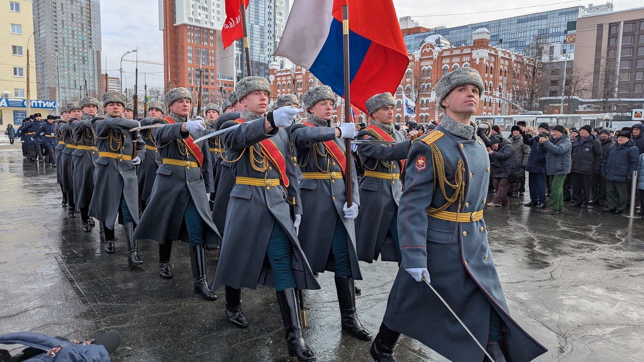 Собравшиеся почтили память уральцев минутой молчания. Рота почётного караула прошла возле памятника торжественным маршем.