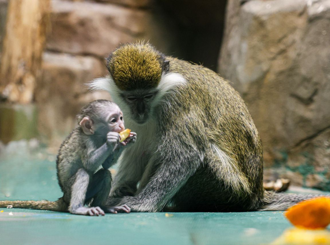 Гриветы вообще отличаются сильной привязанностью к потомству и заботятся о нём на протяжении долгого времени. Малыш появился у пары Максима и Илоны и уже успел проявить характер: он активный, любознательный и постоянно норовит выбраться из-под родительской опеки.