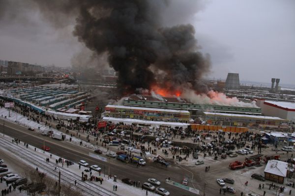 Район вокруг вещевого рынка «Таганский ряд» в Екатеринбурге до сих пор окутан клубами едкого дыма.